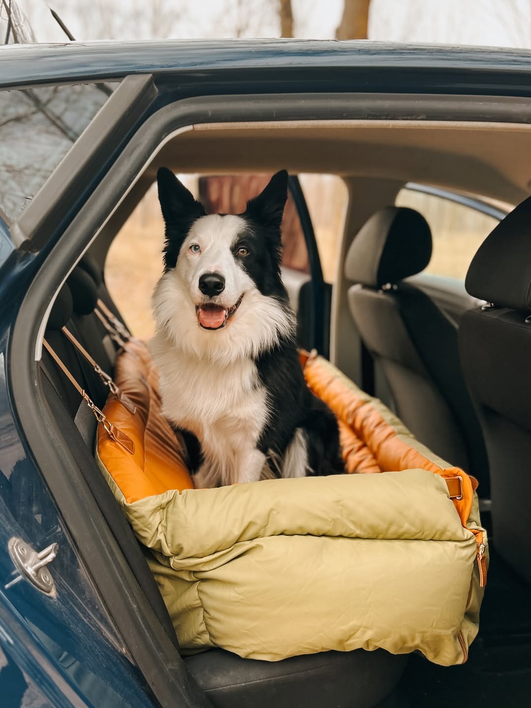 If there was one thing we needed, it was a comfortable car bed, because with so much traveling and walking, we couldn't keep improvising with blankets and towels. 🚘🐶 Because I don't know if I told you, but after the Alps, I threw the cover away because I decided to wash it at 60 degrees in the laundromat, and guess what happened… It shrank. Very clean, though. 🤣