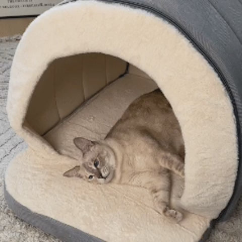 2-in-1 Convertible Design: Transforms effortlessly between a cozy cave for privacy and warmth, and a flat bed for lounging and stretching. Perfect for pets who love both snuggling up and sprawling out.
