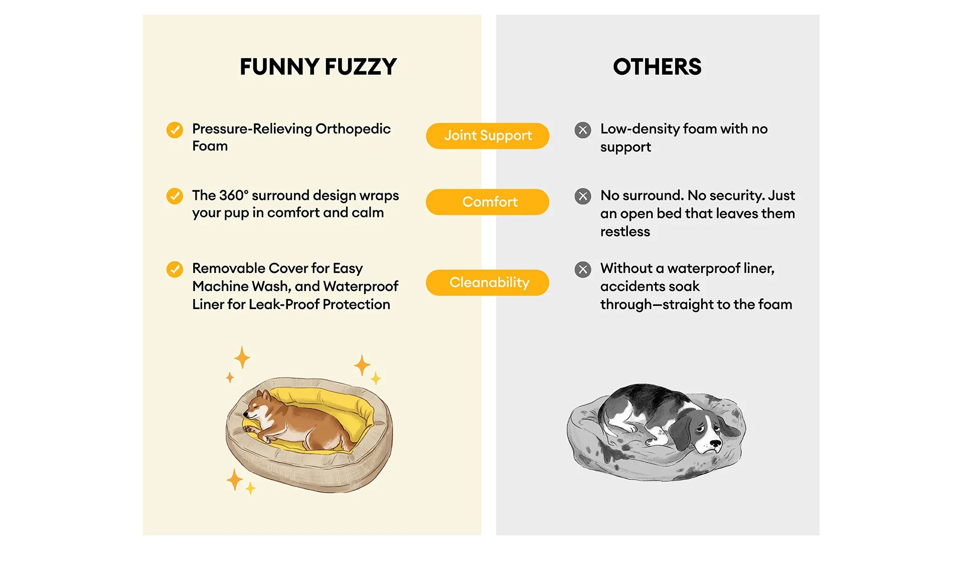 - Protects bones: The interior is filled with 3D high-density orthopedic sponge as well as pp cotton filled with full edges, which can relieve the pressure on joints and bones when the pet is resting, protect the health of the pet's spine, and allow the pet to comfortably place its head in any position while snoozing. Not only does it bring pets an all-round massage, it also reduces anxiety and promotes relaxation.