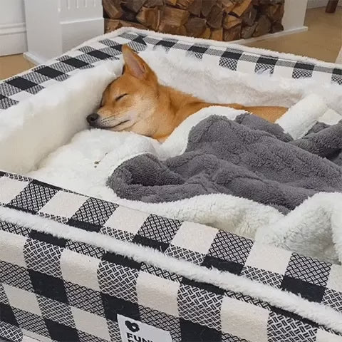 Designed with affection for your four-legged family members, this bed merges the quaint allure of tradition with contemporary comforts. It's a lovingly crafted retreat where sophistication and serenity meet, thoughtfully created to give every beloved dog their own cozy corner of warmth and elegance.
