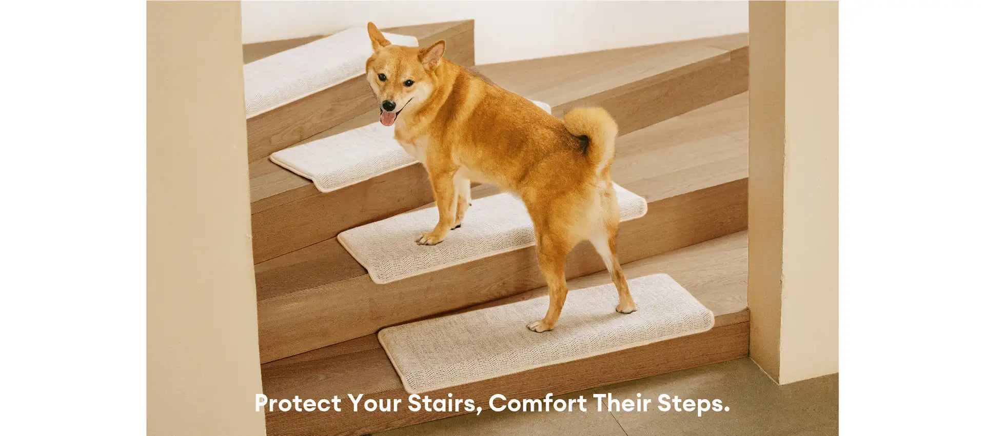 - Gentle on paws, Easy on Joints: Crafted with a soft, textured surface and a cushioning layer, these stair mats offer shock-absorbing comfort that supports aging pets and reduces impact on joints — especially for corgis, dachshunds, and senior dogs.