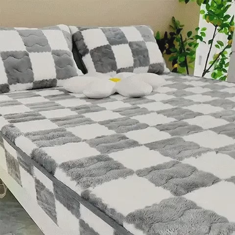 Milk Velvet Checkered Bedding Fitted Sheet Mattress Cover
